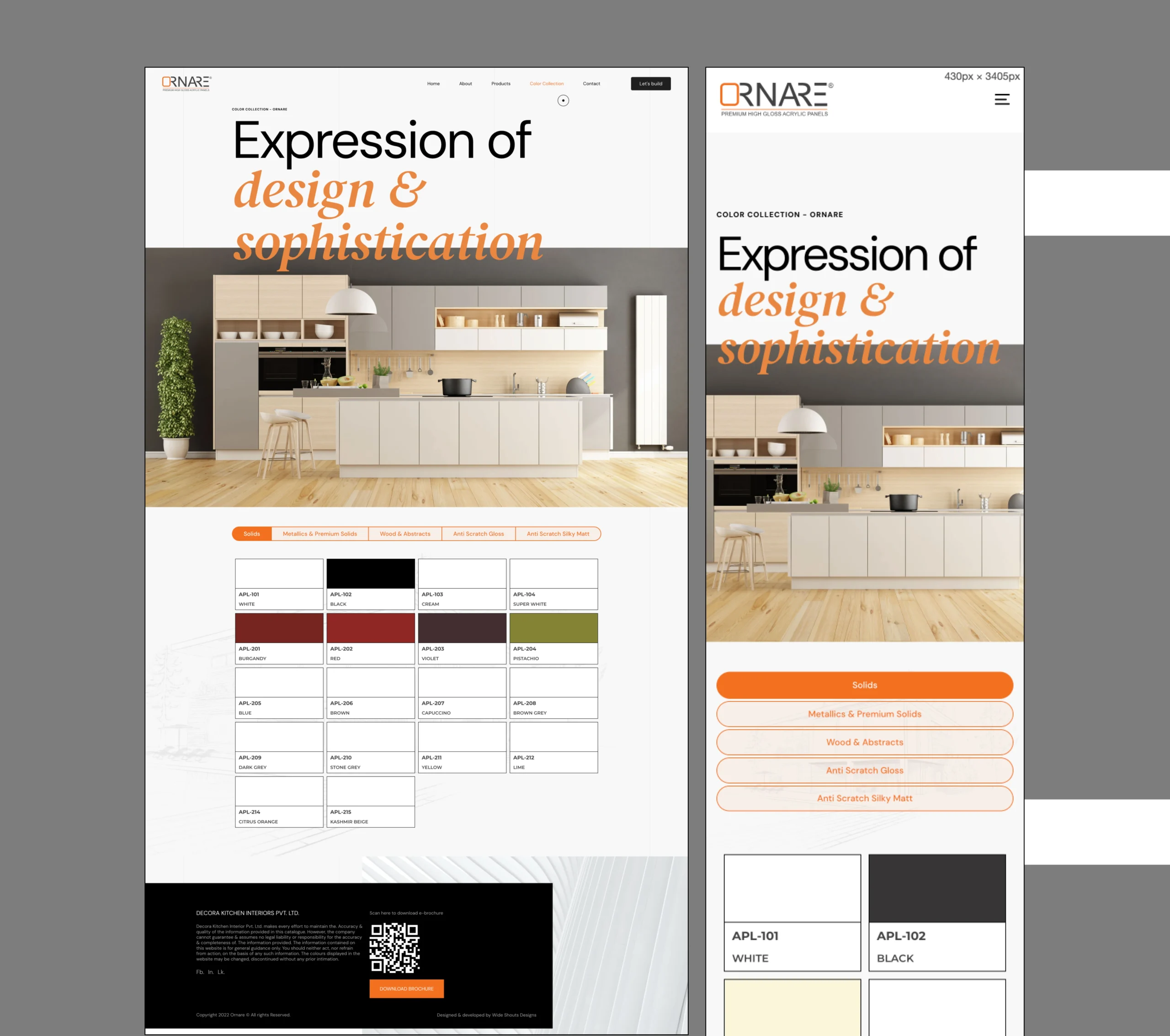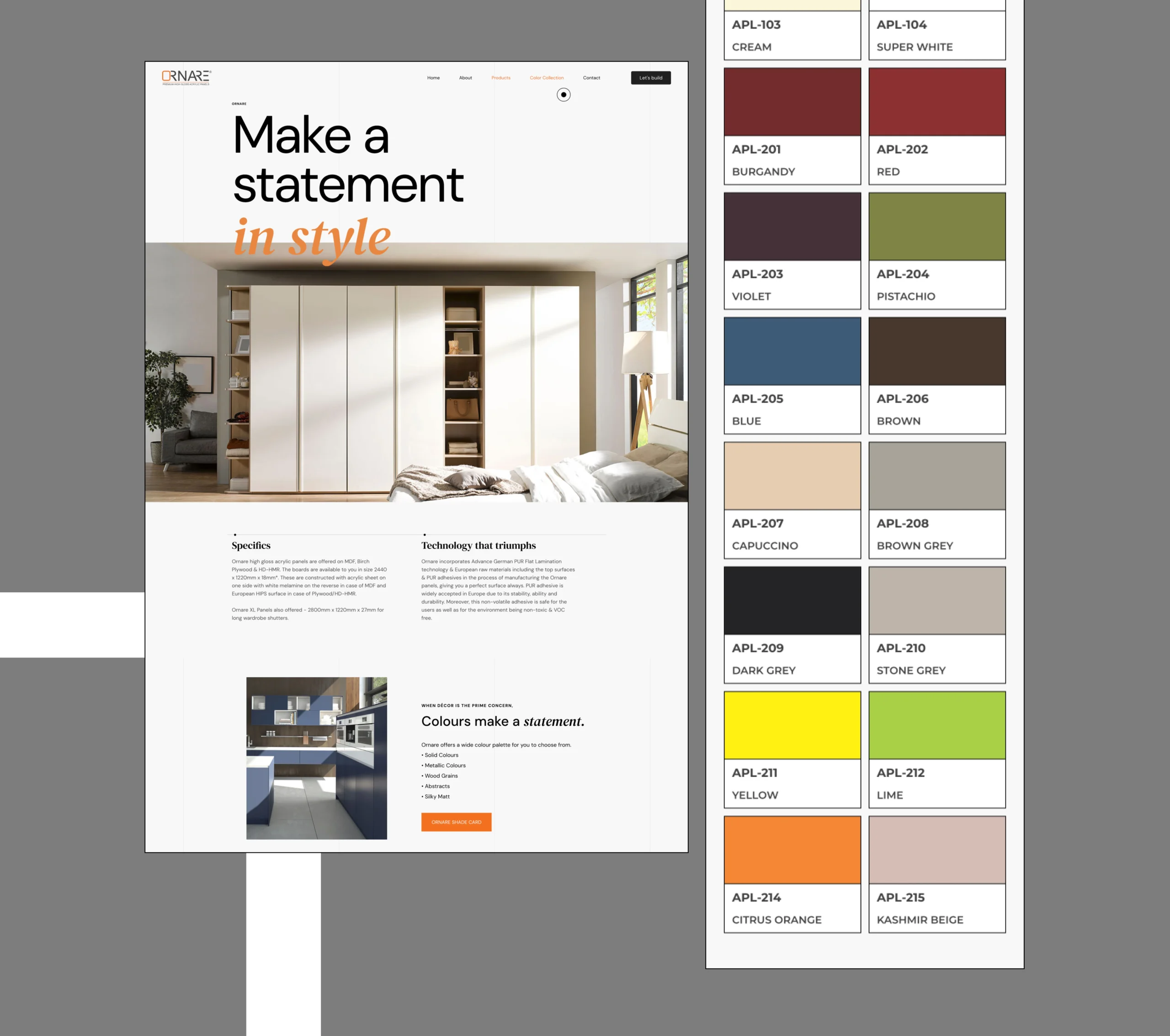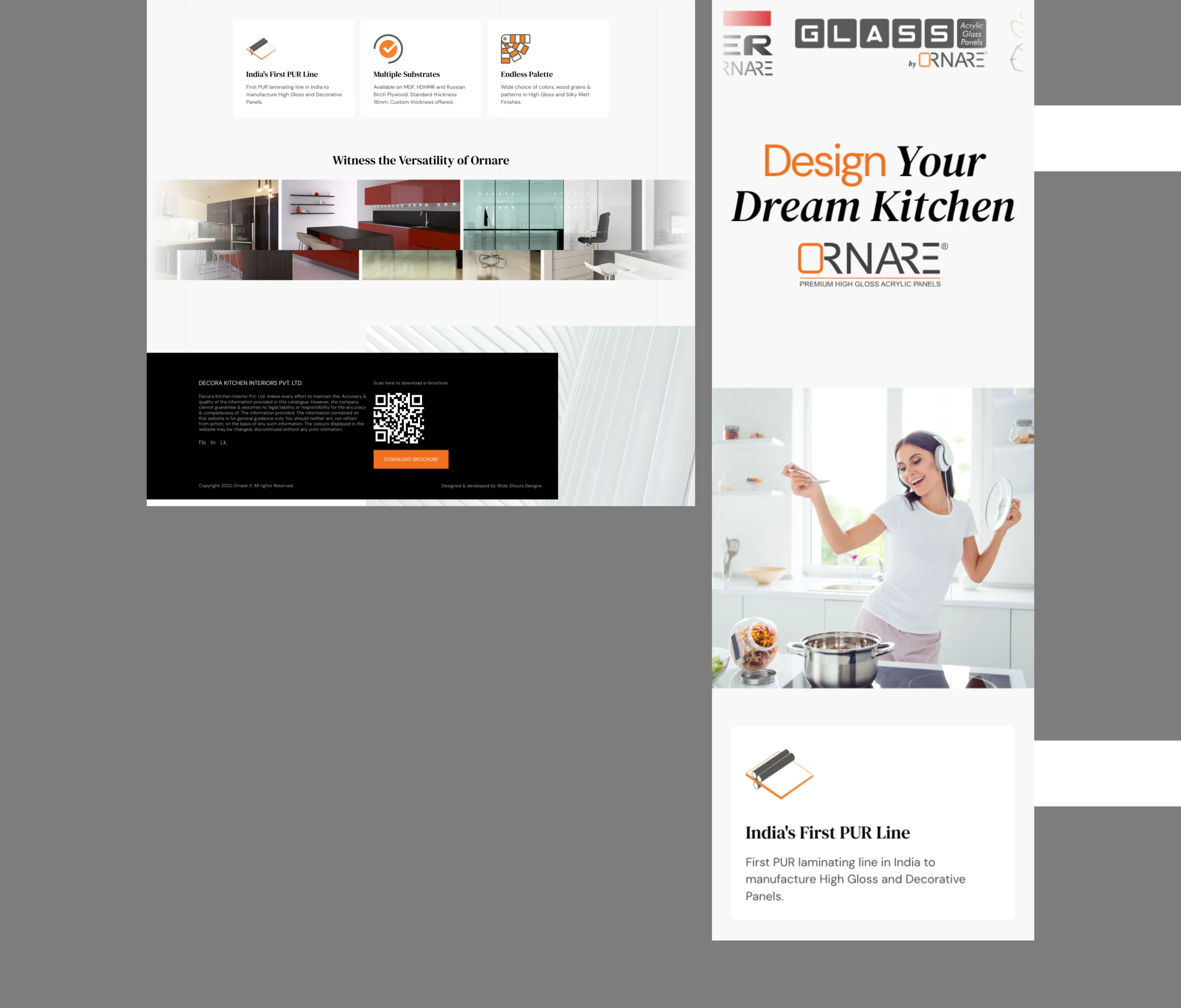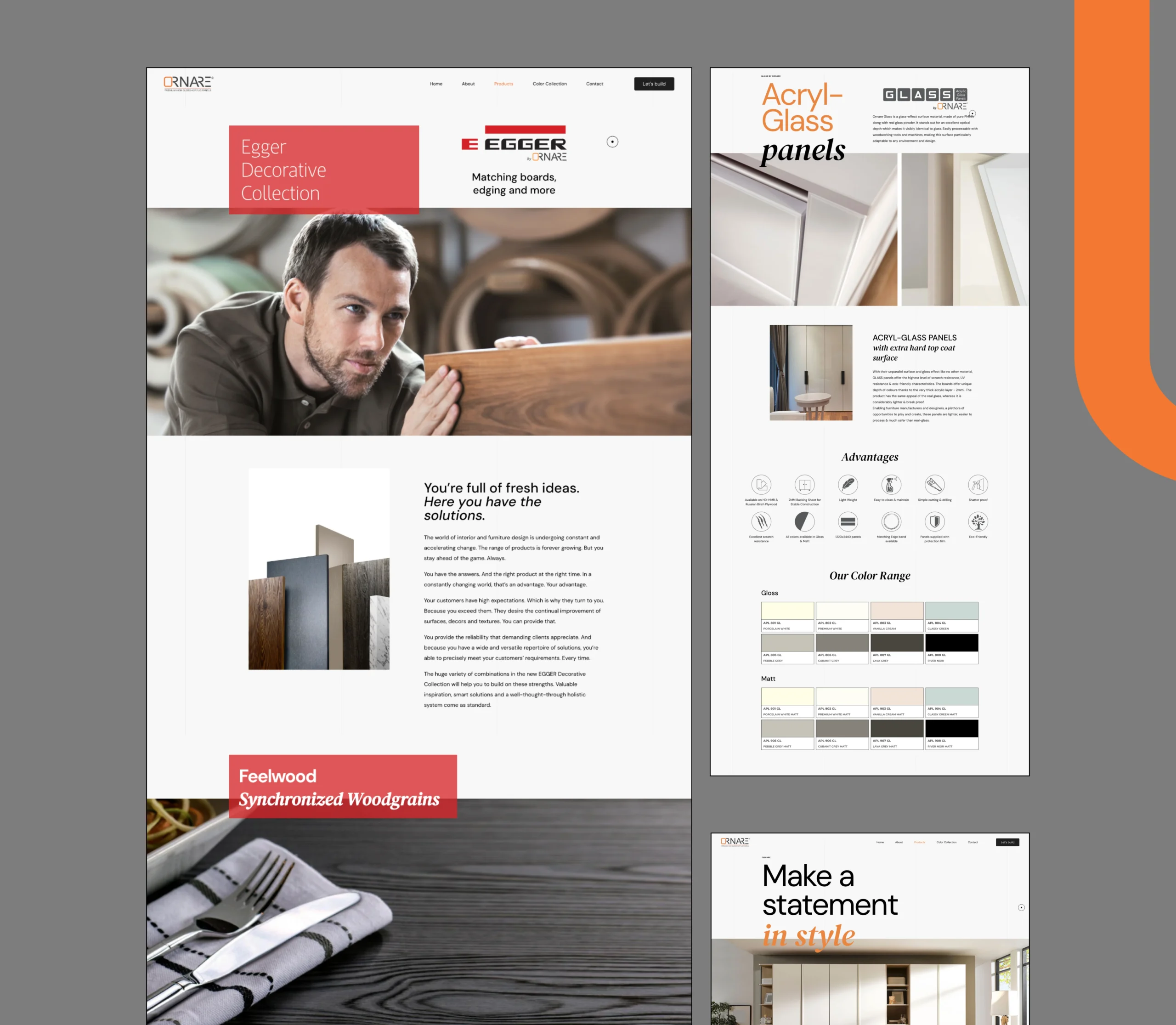As India’s first and the world’s largest range of gloss panels, Ornare showcases the latest global trends in colors and decor, catering to discerning users. Renowned for their unique brilliance and depth, Ornare-Premium Gloss Panels set the standard for high gloss surfaces. The light reflecting off Ornare panels highlights their distinctive personality and class, making them a statement piece in any setting.